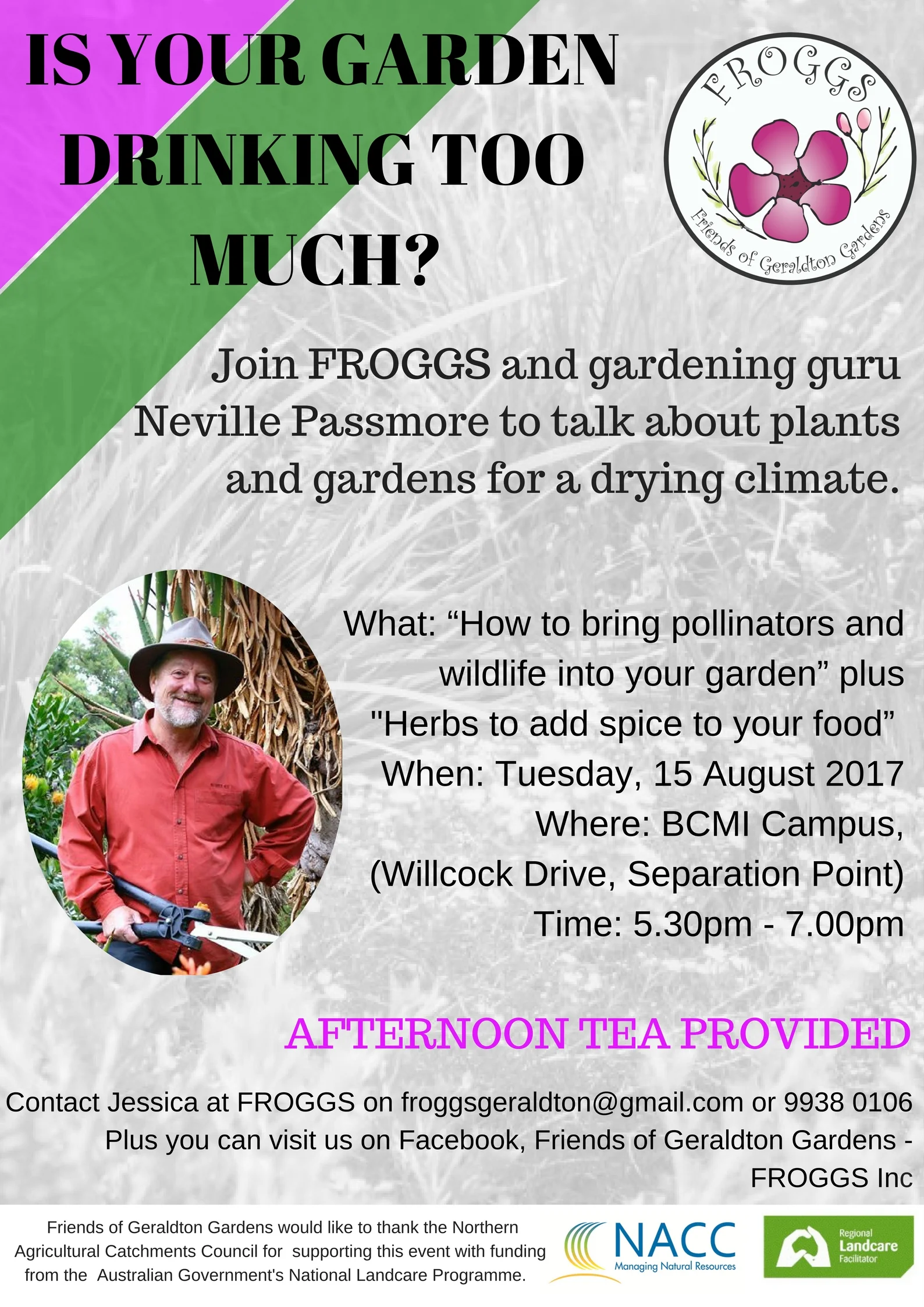 Join Friends of Geraldton Gardens (FROGGS)and gardening guru Neville Passmore to talk about plants