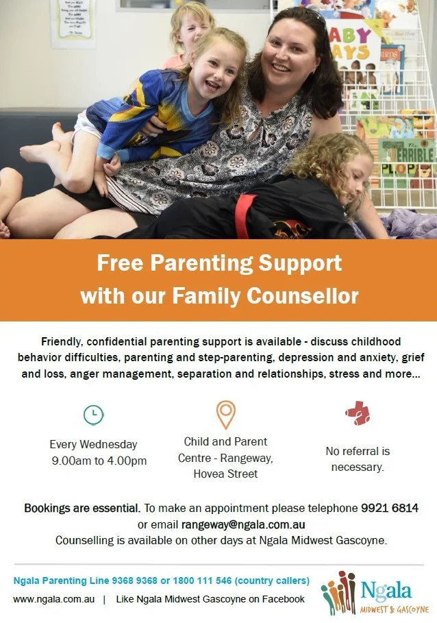 Every Wednesday from November 2016, Geraldton Family Counselling Services will be on site.