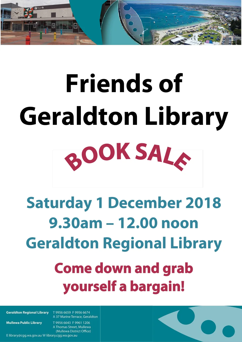Friends of Geraldton Library is a voluntary organization raising funds towards Geraldton Library projects.