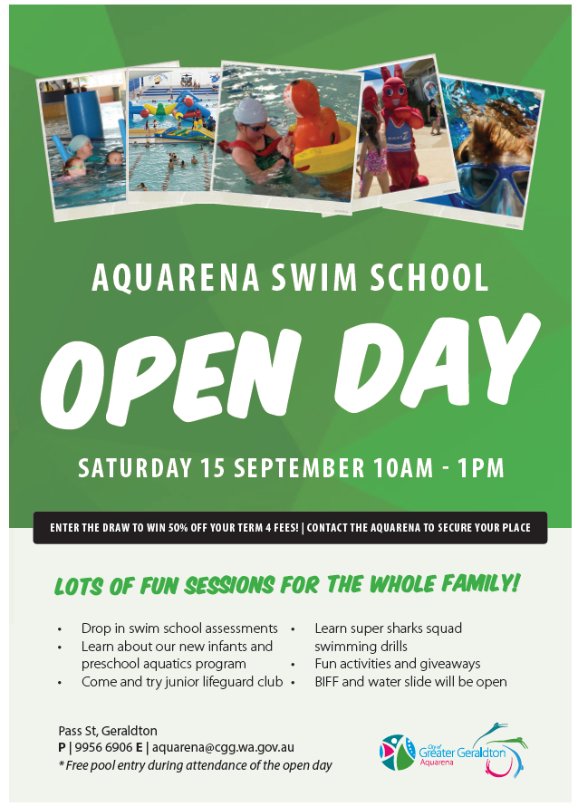 Learn About Our Swim School and all its programs! Come and enjoy free swimming assessments and giveaways. Learn about our NEW infants and preschool aquatics program. The water slide and BIFF will be open! Come & try Junior Lifeguard Club or Super Sharks squad swimming drills.