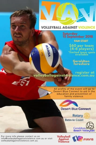 Volleyball Against Violence is non-profit, fun and social volleyball event in Geraldton that brings the community together to raise awareness of family violence.