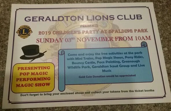 Geraldton Lions are holding their annual childrens party at Spalding Park on Sunday 3rd November 2019 from 10am.