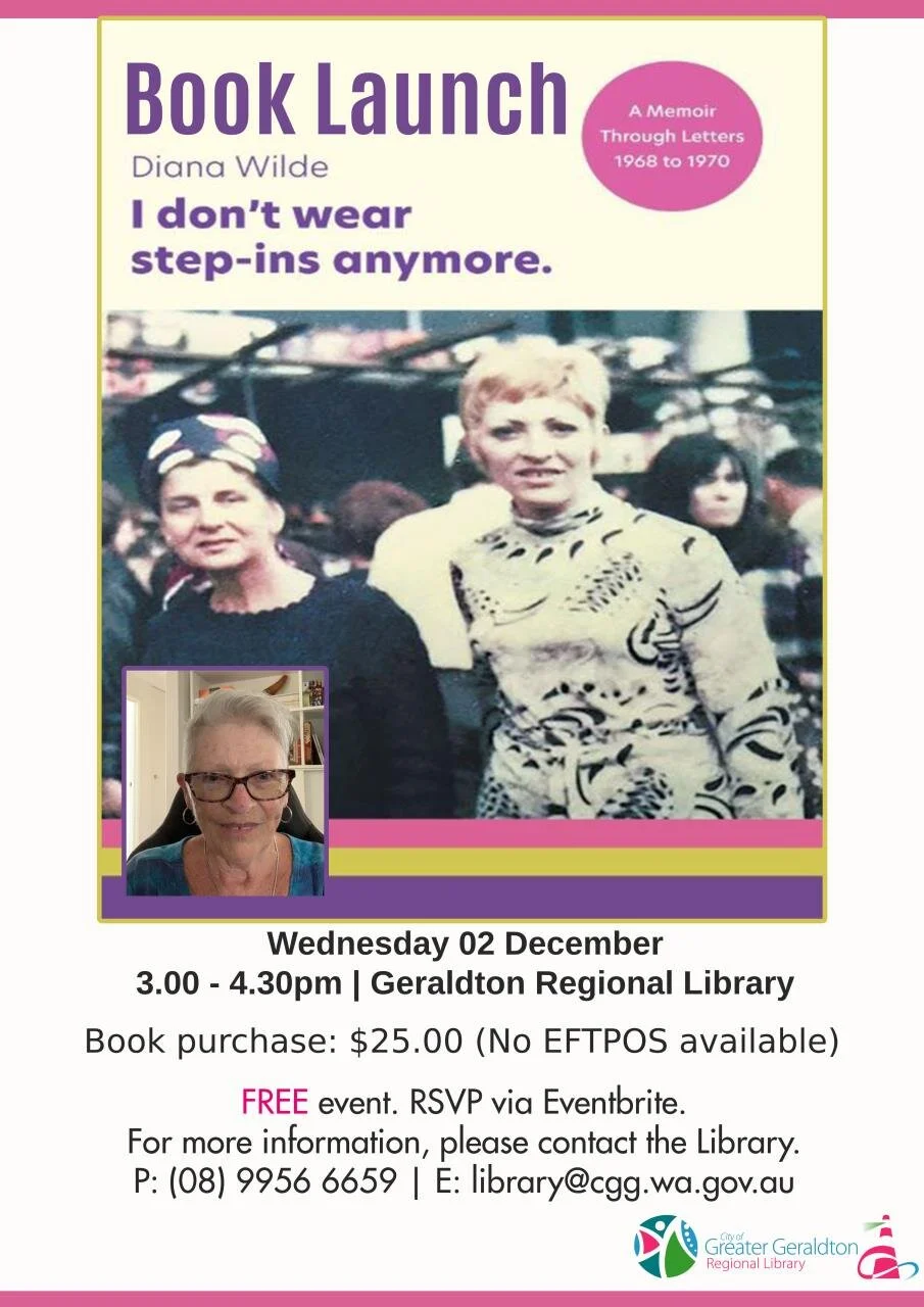 Join us to celebrate the launch of I Don't Wear Step-ins Anymore by Diana Wilde, a memoir through letter 1968-1970. This book details Diana's escape from the control of a conservative and Christian middle class family in Sydney to a swinging London life and overseas journey of discovery.