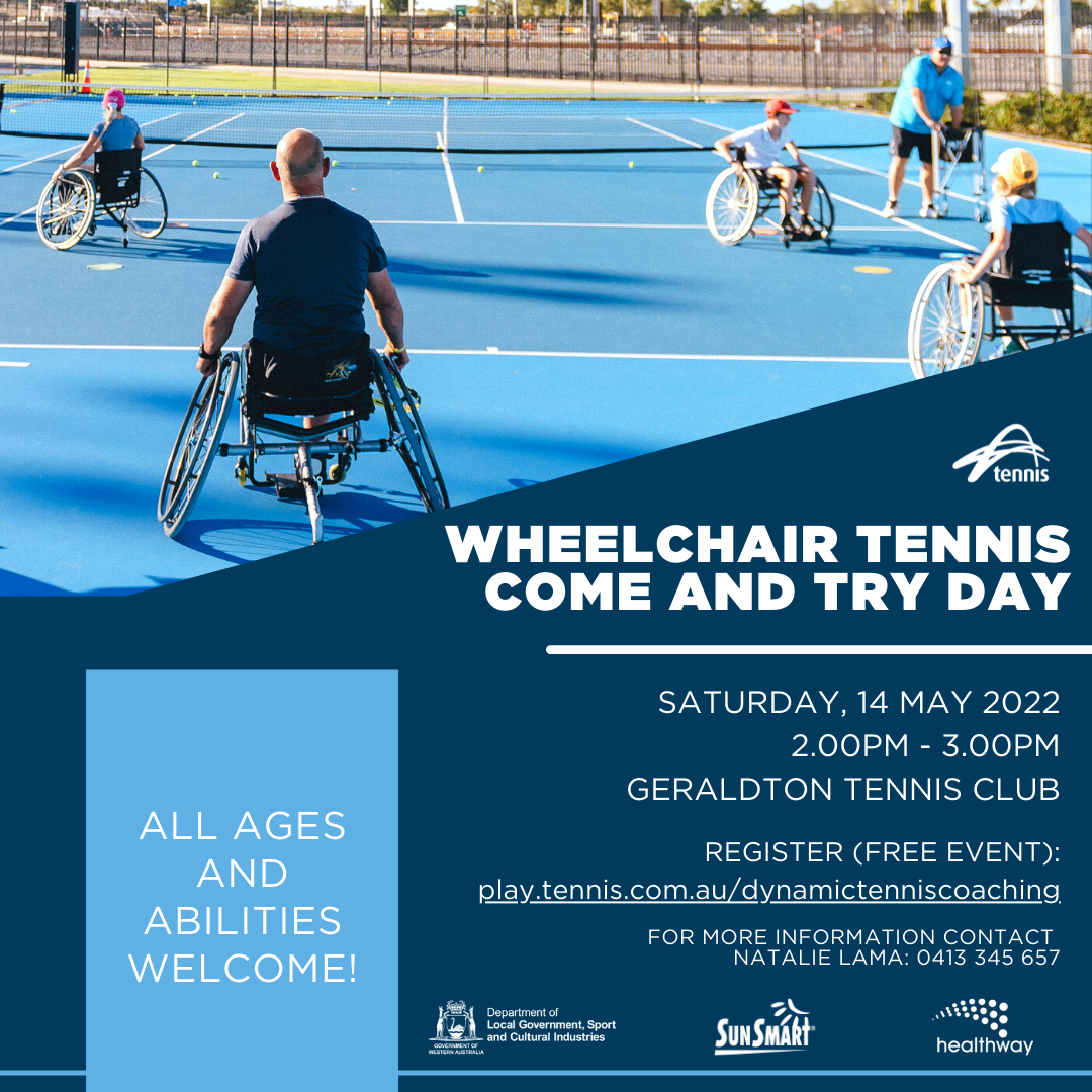 Come and try wheelchair tennis this Saturday 14 May from 2pm! Register your interest at https://bit.ly/3KXq8WN