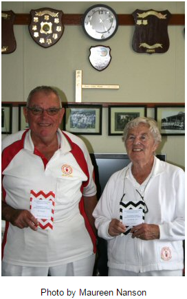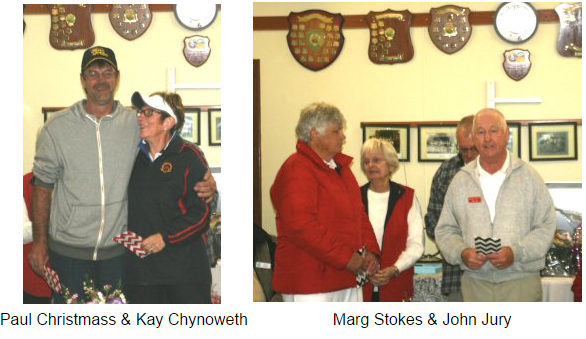 The Golf Croquet Handicap Doubles was won by Kay Chynoweth and Paul Christmass pictured at left, below. The runners up were John Jury and Margaret Stokes pictured below right.