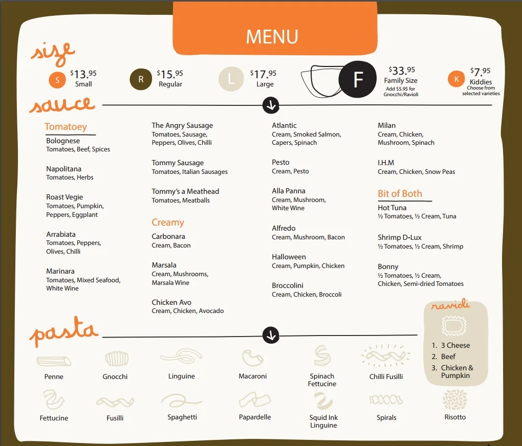They love great food and want to share it with you. They understand that everyone is an individual and they encourage it. When you go into their store you get your choice of pasta, sauce and every ingredient to make your ideal pasta meal. Too much? Don’t worry – they have a menu too and lots of staff to help you choose!